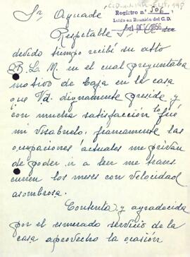 Unitat documental simple ENT, 198 - Carta de Rosa Fernández Mont al president del Centre de Lectura