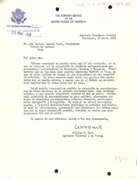 Carta de l'American Consulant General de Barcelona al president del Centre de Lectura