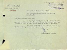 Unitat documental simple ENT, 25 - Carta del Banc Central al president del Centre de Lectura