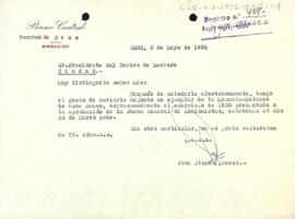 Carta del Banco Central amb sucursal a Reus al president del Centre de Lectura