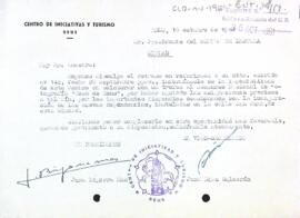 Carta del Centre d'Iniciatives i turisme de Reus al president del Centre de Lectura