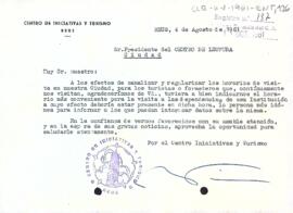 Carta del Centro de iniciativas y turismo al president del Centre de Lectura