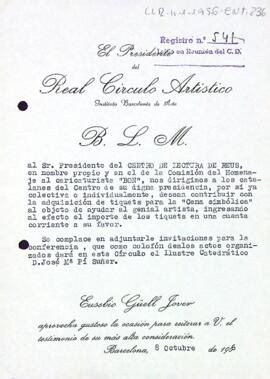 Carta del Círculo Artístico de Barcelona al president del Centre de Lectura