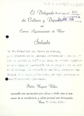 Carta del delegat de cultura i esports de l'Ajuntament de Reus