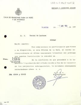 Carta del delegat de la Caixa de Pensions per a la Vellesa i d'Estalves al president del Centre de Lectura