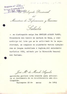 Carta del delegat provincial del Ministeri d'Informació i Turisme al president del Centre de Lectura