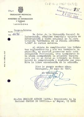 Carta del delegat provincial d'informació i turisme de Tarragona al president del Centre de Lectura