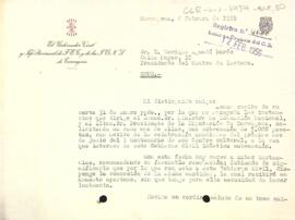 José González-Sama informa a Enric Aguadé la concessió d'una subvenció per als actes del centenari del Centre de Lectura.