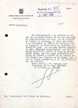 El delegat provincial comunica que la resolució de la rectificació és negativa per no haver recorregut l'acta en el seu dia. És per aquest motiu que no es farà efectiva la devolució dels diners, tal com se sol·licitava.