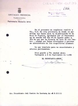 Carta del Patronat de l'Escola d'Art de Tarragona al president del Centre de Lectura