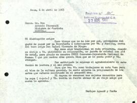 Enric Aguadé sol·licita la col·laboració d'Antonio Iturmendi, ministre de justícia, fent donació d'un gerro de vidre coma premi pel XVIII Concurs-exposició Nacional de Roses.