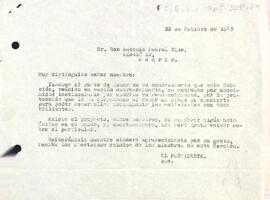 Carta d'agraïment del president a Antonio Pedrol Rius