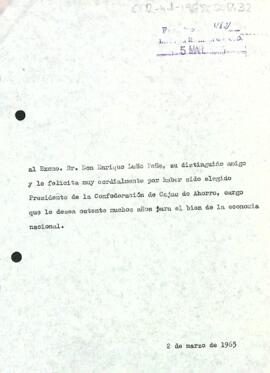 Enric Aguadé felicita Enrique Luño pel seu recent nomenament com a president de la Confederació de caixes d'Estalvi.