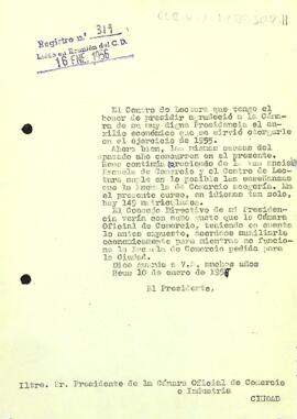 Enric Aguadé sol·licita al president de la cambra un auxili econòmic per al Centre de Lectura, per labor que està fent suplint les mancances de l'Escola de Comerç.