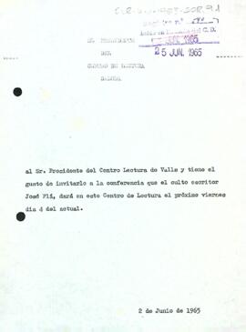 Invitació al president del Centre de Lectura de Valls