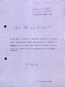 Enric Aguadé pregunta a Salvador Aulèstia si té tots els números de la Revista del Centre de Lectura.