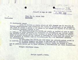 Carta del president a Salvador Julián Uría amb relació a una acta