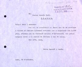 Enric Aguadé convoca Xavier Amorós a la reunió per a constituir el jurat del Concurs Literari.