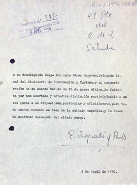 Carta del president al delegat local d'informació i turisme felicitant-lo per la seva merescuda distinció