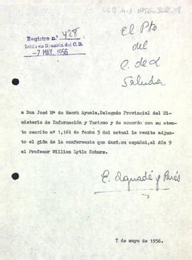 Enric Aguadé comunica l'adjunció del guió de la conferència del professor William Lytle Schurs.
