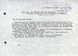 Carta del president al delegat provincial d'informació i turisme de Tarragona