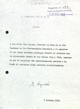 Enric Aguadé agraeix a Julio Vila Cazaux la prolongació diària de la circulació dels trens 1833 i 1834, esperant que aquesta acabi sent permanent.