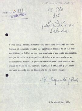 Carta del president al director de l'Istituto Italiano di Cultura de Barcelona