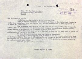 Enric Aguadé comunica a Juan Aparicio l'enviament de tres exemplars de l'acta del jurat i els rebuts signats dels guanyadors del concurs.