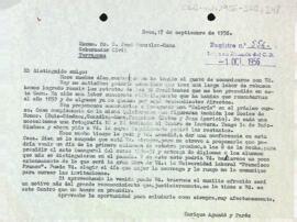 Carta del president al governador civil de la província de Tarragona