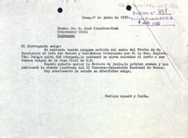 Carta del president al governador civil de Tarragona