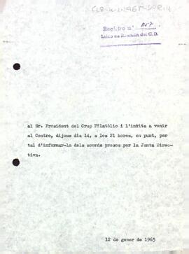 Enric Aguadé convida el president del Grupo Filatélico de Reus per tractar els acords presos per la Junta directiva del Centre de Lectura.