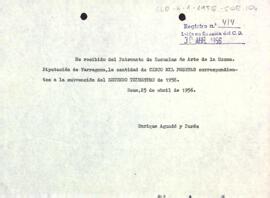 Item SOR, 104 - Carta del president al Patronat d'Escoles d'Art de la Diputació Provincial de Tarragona comunicant la recepció de la subvenció