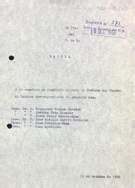 Carta del president comunicant l'enviament de la Revista del Centre de Lectura