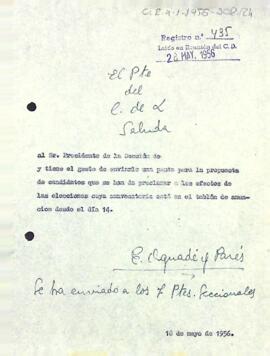 Enric Aguadé comunica l'enviament, als presidents de les seccions, d'una pauta per a la proposta dels candidats que es vulguin presentar en les eleccions que s'ha de celebrar.