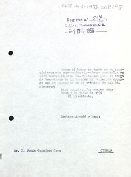Enric Aguadé informa Tomàs Guinjoan Grau que en les últimes eleccions generals ha estat reelegit per ocupar el càrrec de secretari de la Secció de Música.