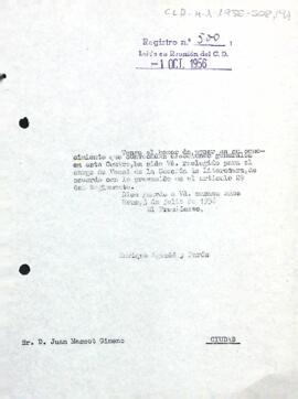 Carta del president del Centre de Lectura a Joan Massot Gimeno