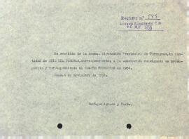Carta del president del Centre de Lectura a la Diputació de Tarragona