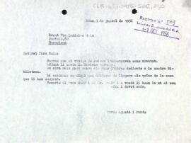 Carta del president del Centre de Lectura a Pere Ladislao Guim