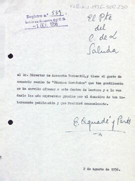 Carta d'agraïment del president del Centre de Lectura al director de l'Assessoria Mercantil