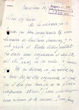 C. Vidal sol·licita informació sobre el cicle de conferències celebrades durant la setmana de la cultura francesa. Adjunta un anunci oferint-se com a professor d'idiomes.