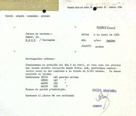 L'empresa MAESPA comunica la recepció de la comanda i informa de la nova tarifa de preus abans de començar la tirada de sobres.