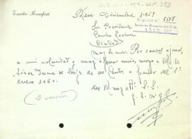 Emilio Rocafort sol·licita la seva baixa com a soci a partir del gener de 1960.