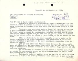 Carta d'un soci, anònim, dirigida al president de l'entitat queixant-se per la presència d'un directiu el qual es vesteix amb mànigues de camisa i no amb americana com creu que hauria d'anar.
