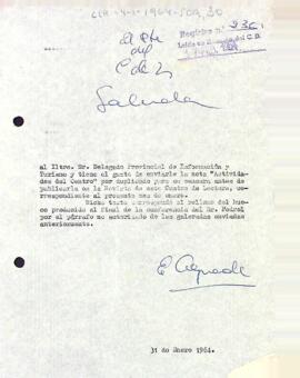 Enric Aguadé envia al delegat provincial d'Informació i Turisme les activitats programades per l'entitat per tal que passin la censura. Data del document: 31-01-1964