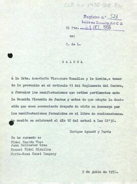 Convocatòria del president del Centre de Lectura a socis de l'entitat amb motiu de les seves reclamacions