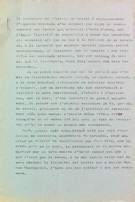 Discurs del president del Centre de Lectura amb motiu del recital de Nadales a càrrec de les alumnes de l'Escola de Dansa a la memòria de Mossèn Ramon Muntanyola. Acompanya el programa de mà de l'acte. Data de l'acte: 21-12-1973