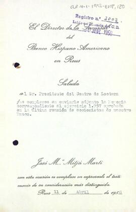 El Banco Hispano Americano fa donatiu de la memòria dels exercicis de l'any 1957. Data del document: 11-04-1958