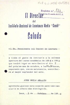 Invitació del director de l'Instituto Nacional de Enseñanza Media de Reus Gaudí al president del Centre de Lectura