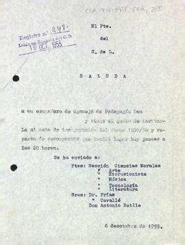 El president Aguadé convida als presidents de les seccions del Centre de Lectura a l'acte d'inauguració del curs 1955/56. Data del document: 06-10-1955