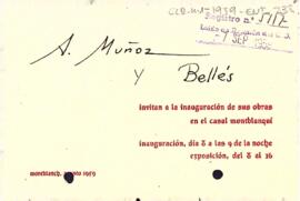 Invitació d'A. Muñoz y Bellés a la inauguració de l'exposició de les seves obres al casal montblanquí.